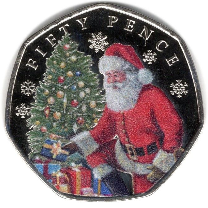 Назва: 50 пенсів — Карл III (Дід Мороз і ялинка; кольорова)