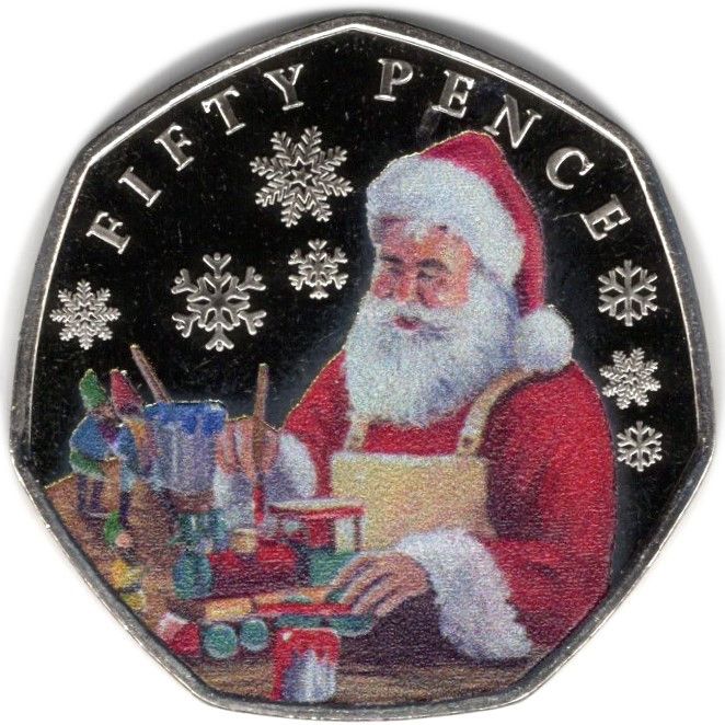 Назва: 50 пенсів — Карл III (Дід Мороз з іграшками; кольорова)