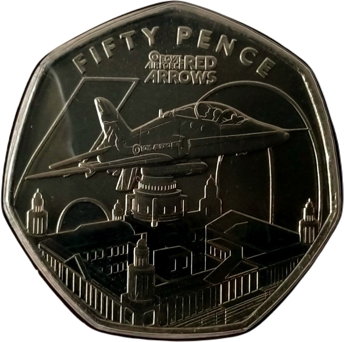 Назва: 50 пенсів — Карл III (Червоні стріли над ратушею Белфаста)