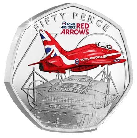 Назва: 50 пенсів — Карл III (Червоні стріли над стадіоном «Міленіум»; срібна монета)
