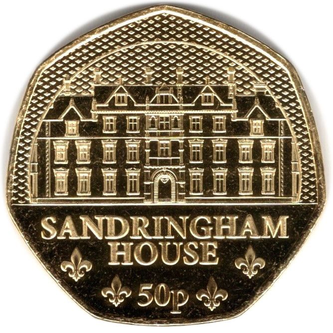 Назва: 50 пенсів — Карл III (королівська резиденція — Сандрінгамський палац; позолочена)