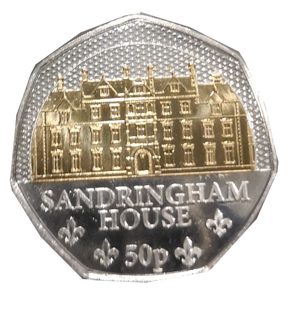 Назва: 50 пенсів — Карл III (королівська резиденція — Сандрінгемський палац; срібло/позолота)