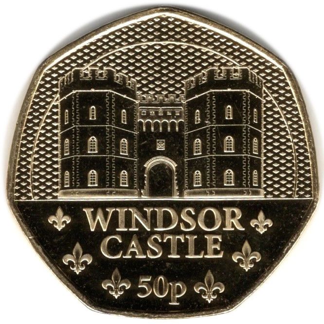 Назва: 50 пенсів — Карл III (королівська резиденція — Віндзорський замок; позолочена)