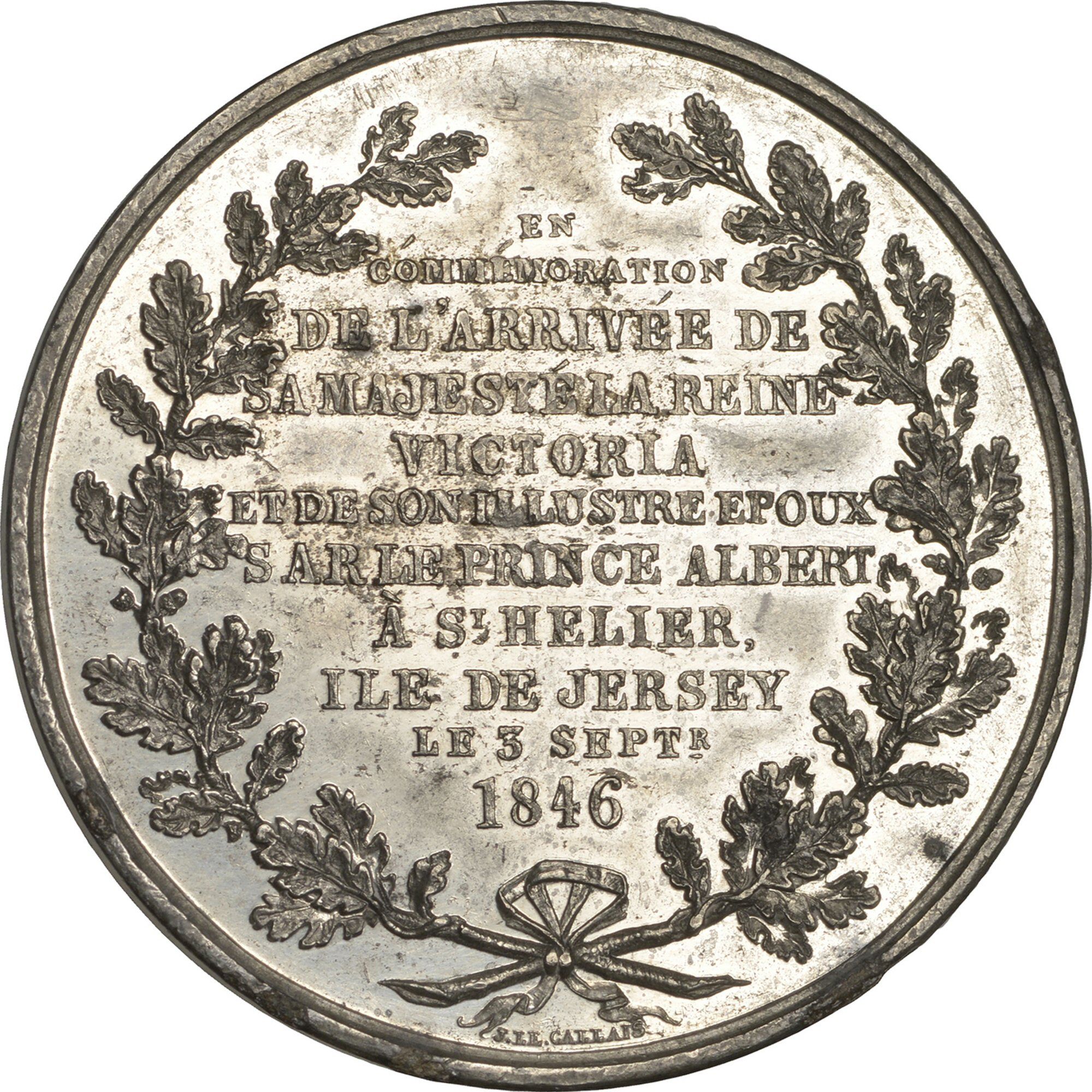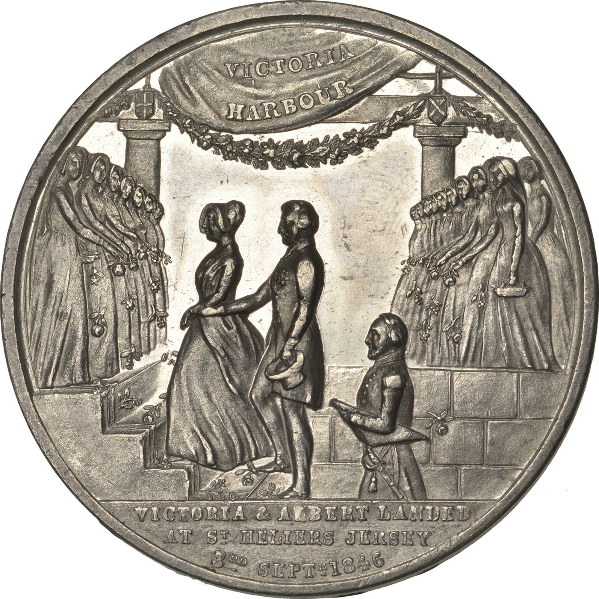 EN CÓMMÉMORATION DE L'ARRIVÉE DE SA MAJESTÉ LA REINE VICTORIA ET DE SON ILLUSTRE EPOUX S AR LE PRINCE ALBERT À ST HELIER, ILE DE JERSEY LE 3 SEPTR. 1846