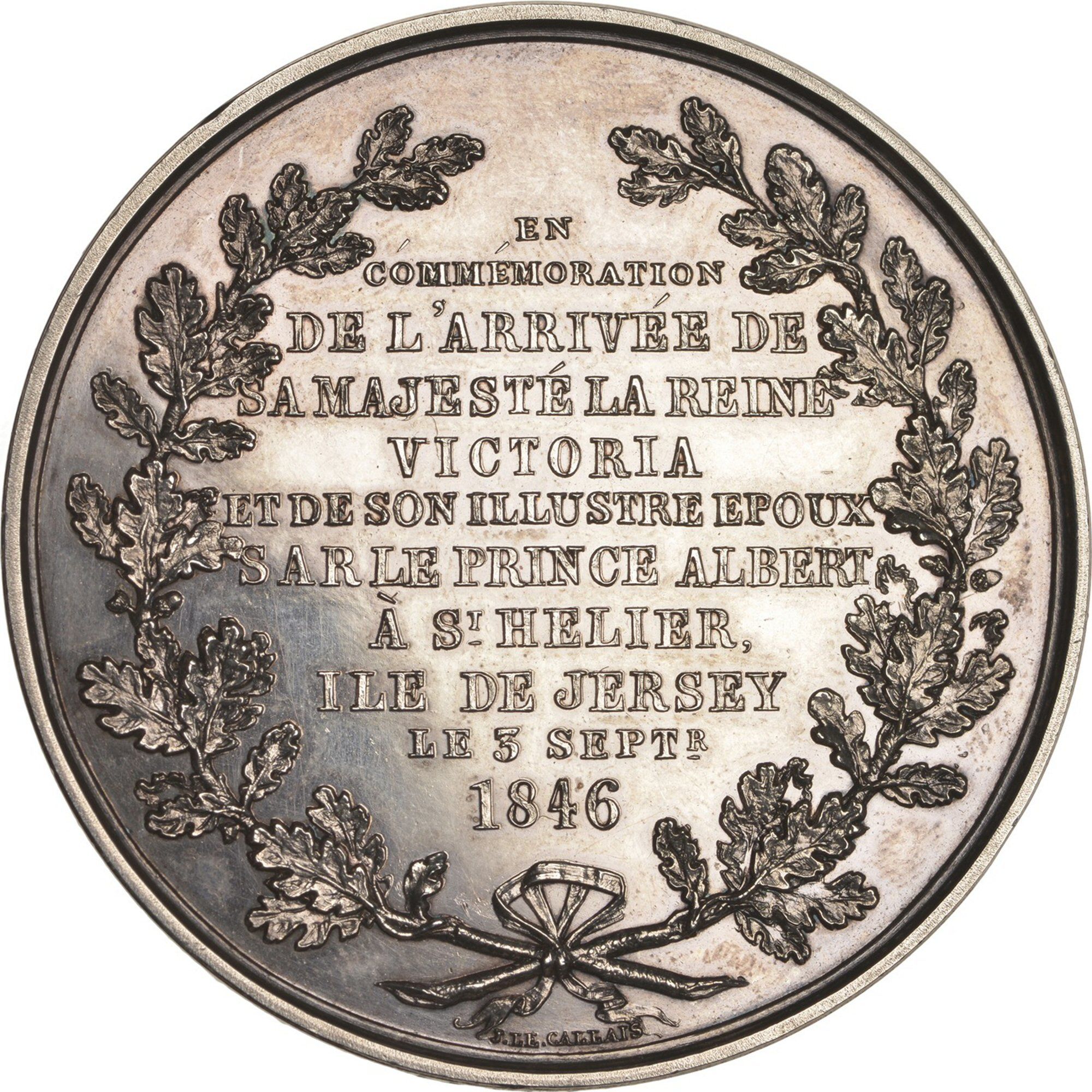 EN CÓMMÉMORATION DE L'ARRIVÉE DE SA MAJESTÉ LA REINE VICTORIA ET DE SON ILLUSTRE EPOUX S AR LE PRINCE ALBERT À ST HELIER, ILE DE JERSEY LE 3 SEPTR. 1846