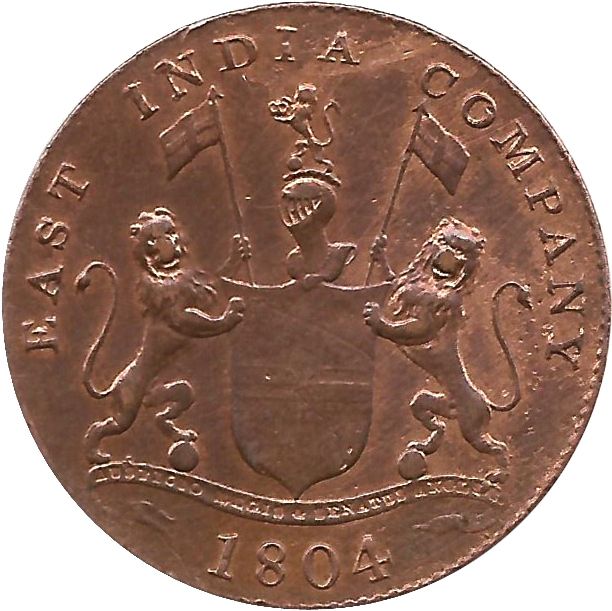 Опис: Герб Британської Ост-Індської компанії з опорами. Дата внизу.