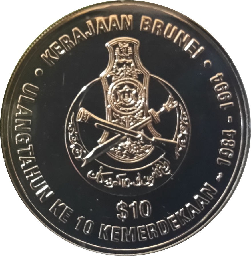 10 ринггітів / доларів — Хассанал Болкіах (Незалежність) 1994 – 1994 Бруней