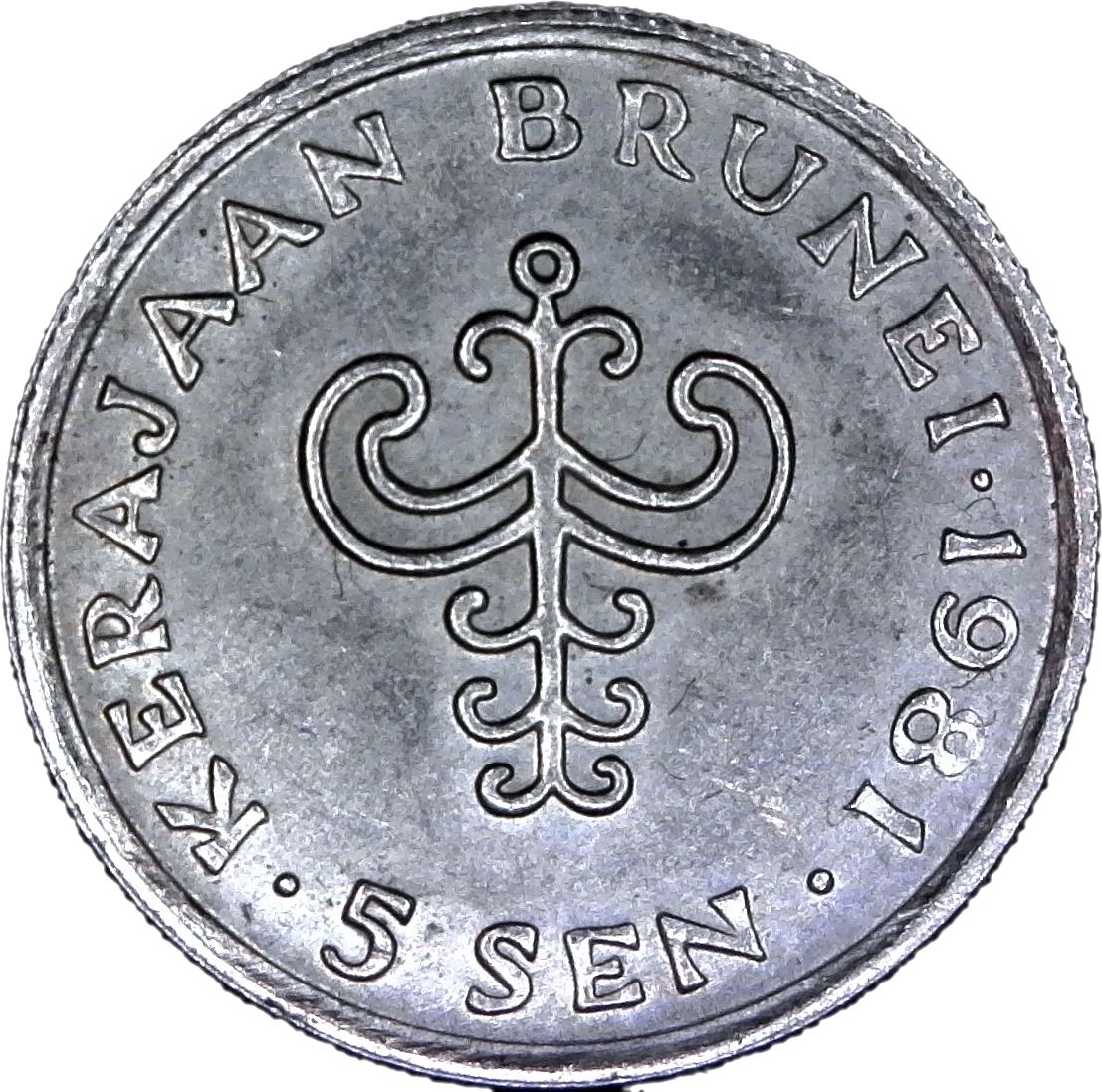 5 сенів — Хассанал Болкіах (1-й портрет; без цифри «I» у назві) 1977 – 1993 Бруней