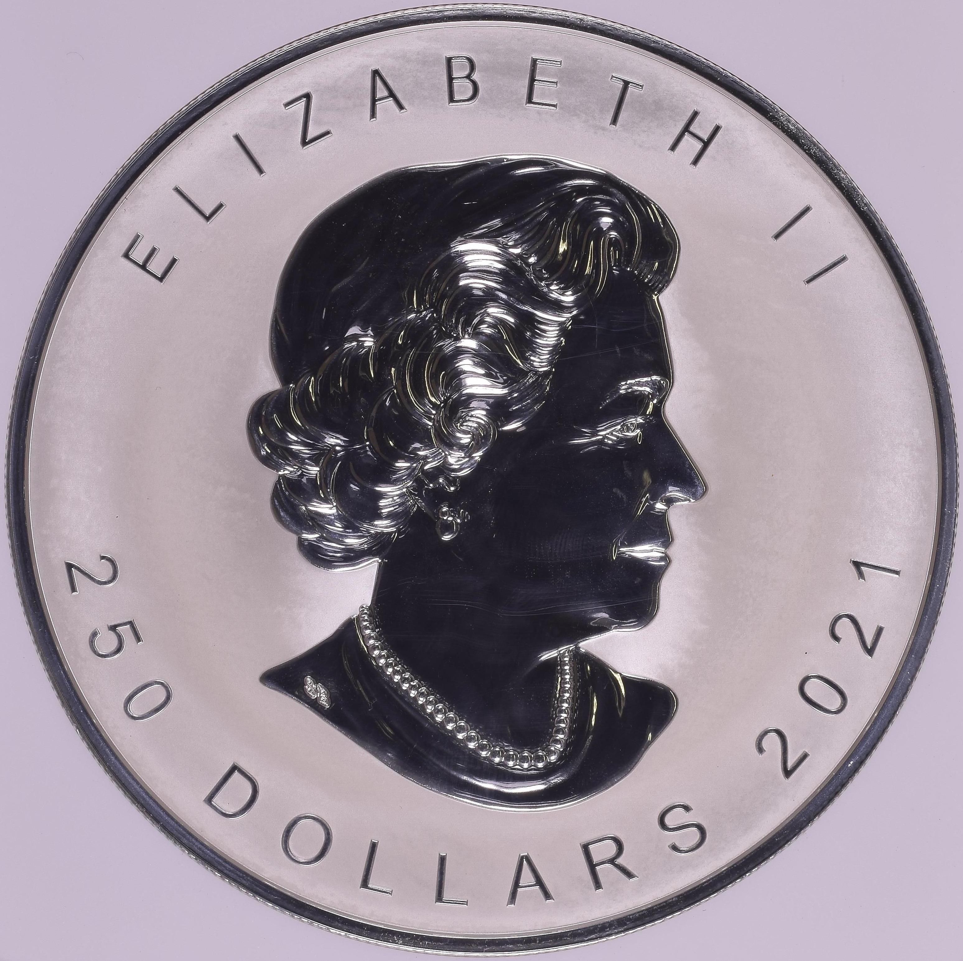 250 доларів — Єлизавета II (срібний кленовий лист із супер-інкузом) 2021 – 2021 Канада