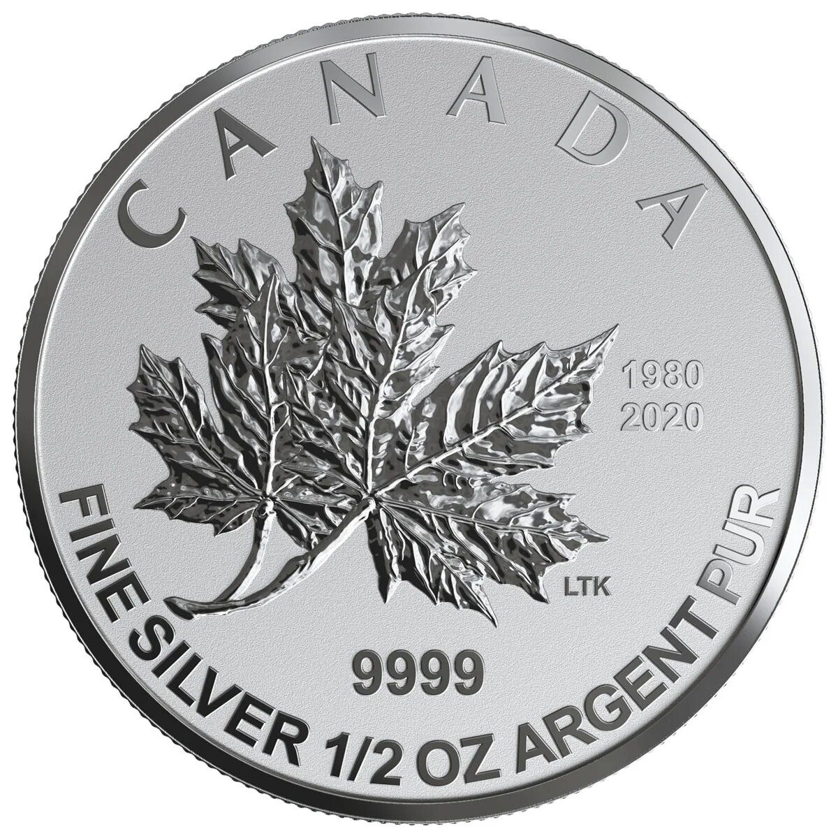 Опис: З мотивом кленового листка. Подвійна дата «1980 2020» позначає 40-ту річницю Закону про національний гімн, який визначив «O Canada» національним гімном Канади.