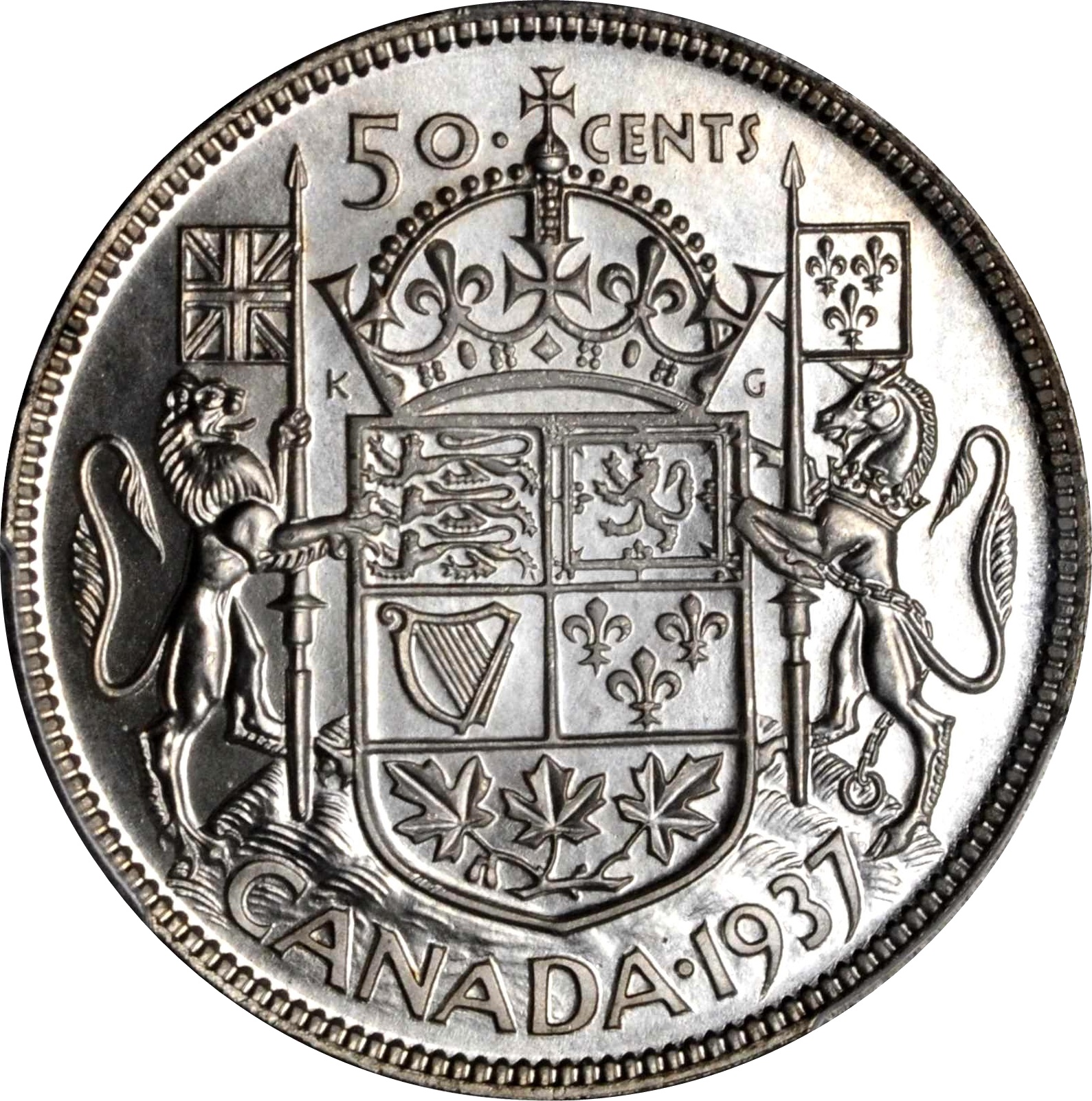 50 центів — Георг VI (з IND:IMP:) 1937 – 1947 Канада