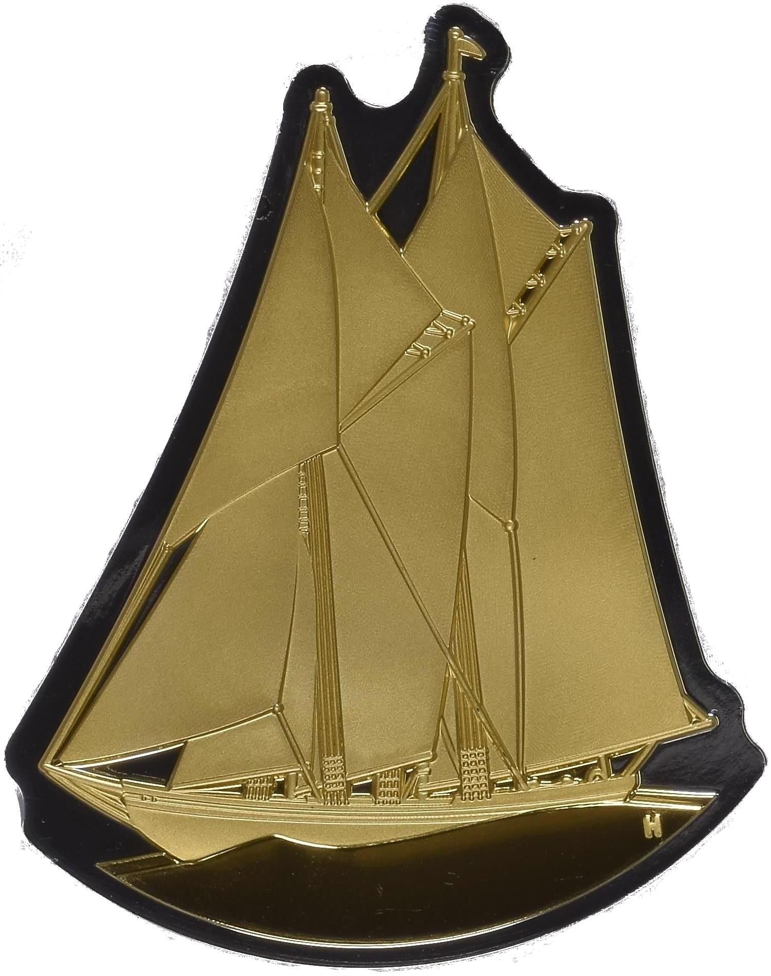 Опис: Монета була спеціально розроблена для забезпечення постійної ваги, а також для того, щоб предмет залишався незмінним від оригіналу в деталях і пропорціях. З реверсу монети номіналом 10 центів 1937 року на відкритому морі пливе знаменитий шхуна Емануеля Гана, заснована на «Блюноуз». Сцена зображена в межах власного силуету і підкреслена покриттям з чистого золота.