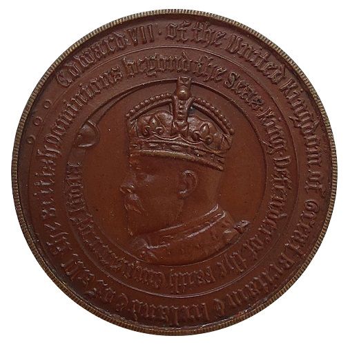 Опис: Бюст Едуарда VII, ліворуч. Напис спірально закручується всередину.