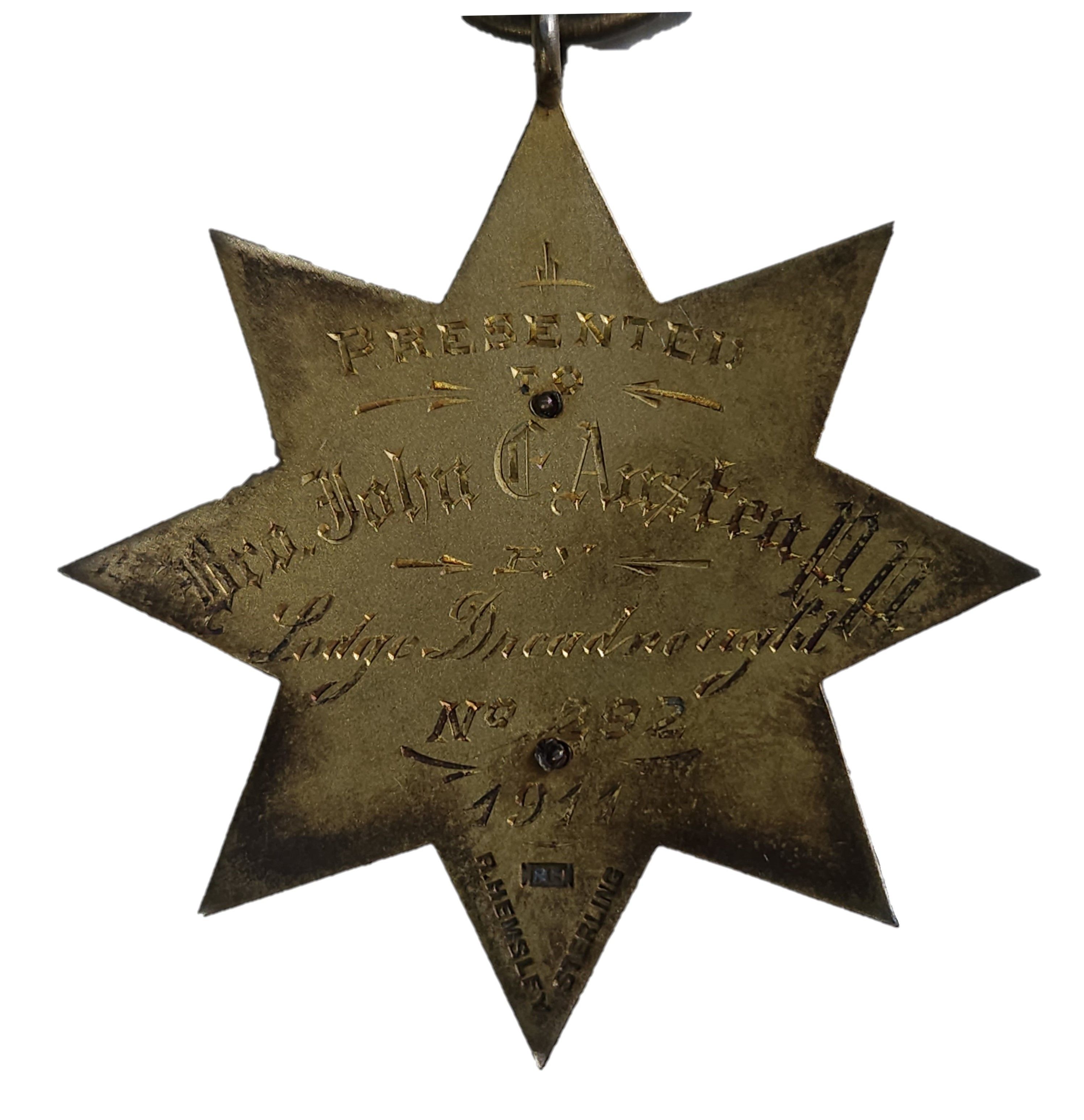 Опис: Напис на звороті позолоченої зірки.