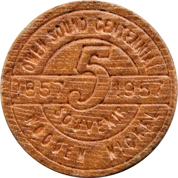 Дерев'яна монета номіналом 5 центів — 100-річчя міста Оуен-Саунд (Онтаріо) 1957 – 1957 Канада