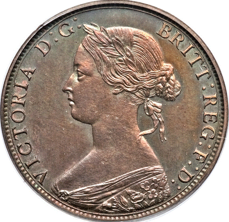 Опис: Портрет королеви Вікторії в лавровому вінку, обернений ліворуч.