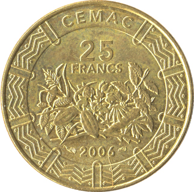 25 франків CFA 2006 – 2023 Центральноафриканські держави