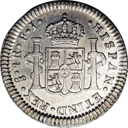1 реал — Фердинанд VII (бюст Карлоса IV) 1808 – 1817 Чилі