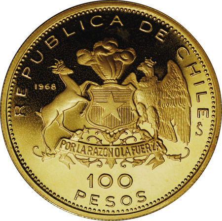 100 песо (150-та річниця національної монетної системи) 1968 – 1968 Чилі