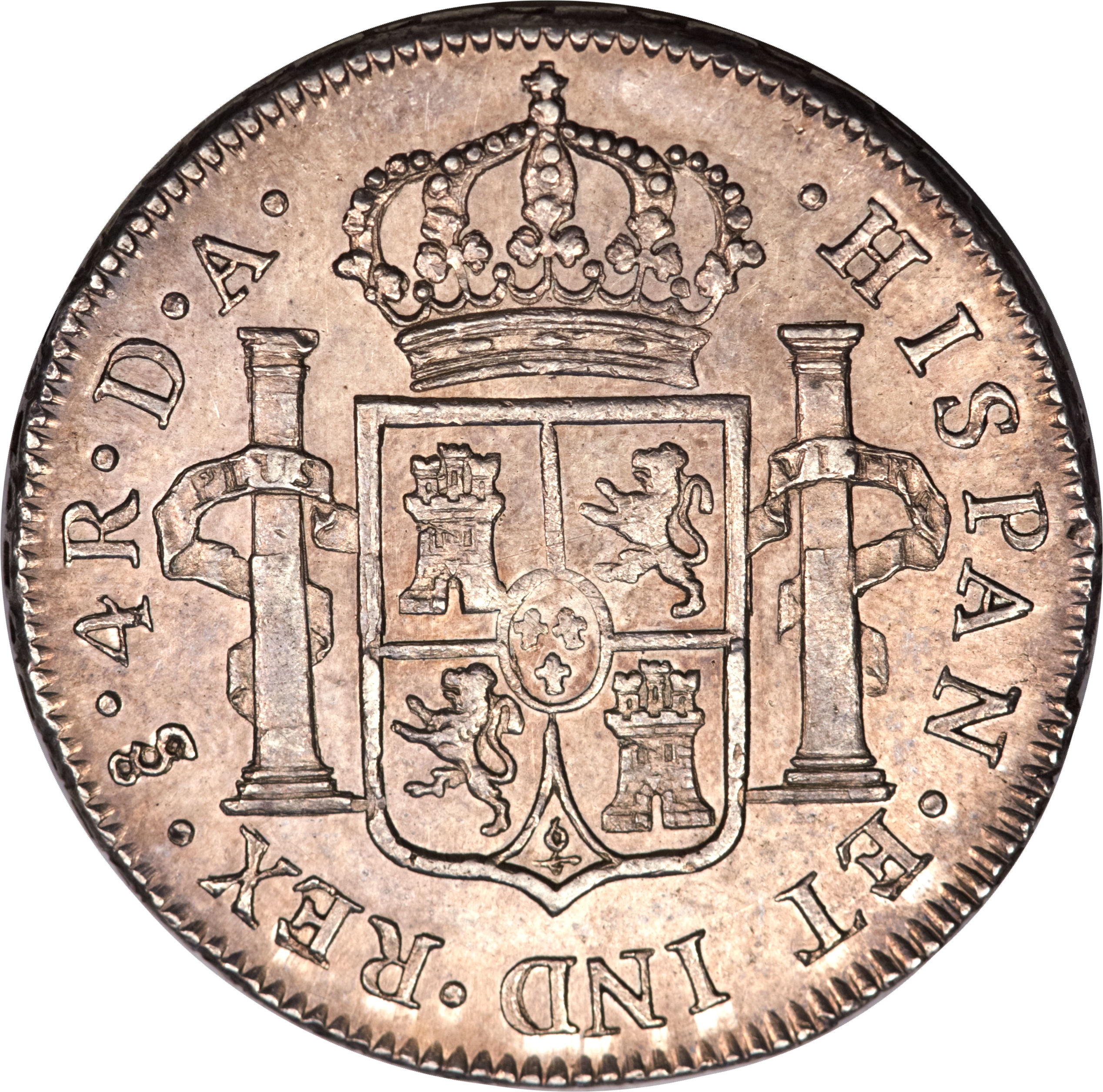 Назва: 4 реалес — Карл IV (бюст Карла III, CAROLUS IV)