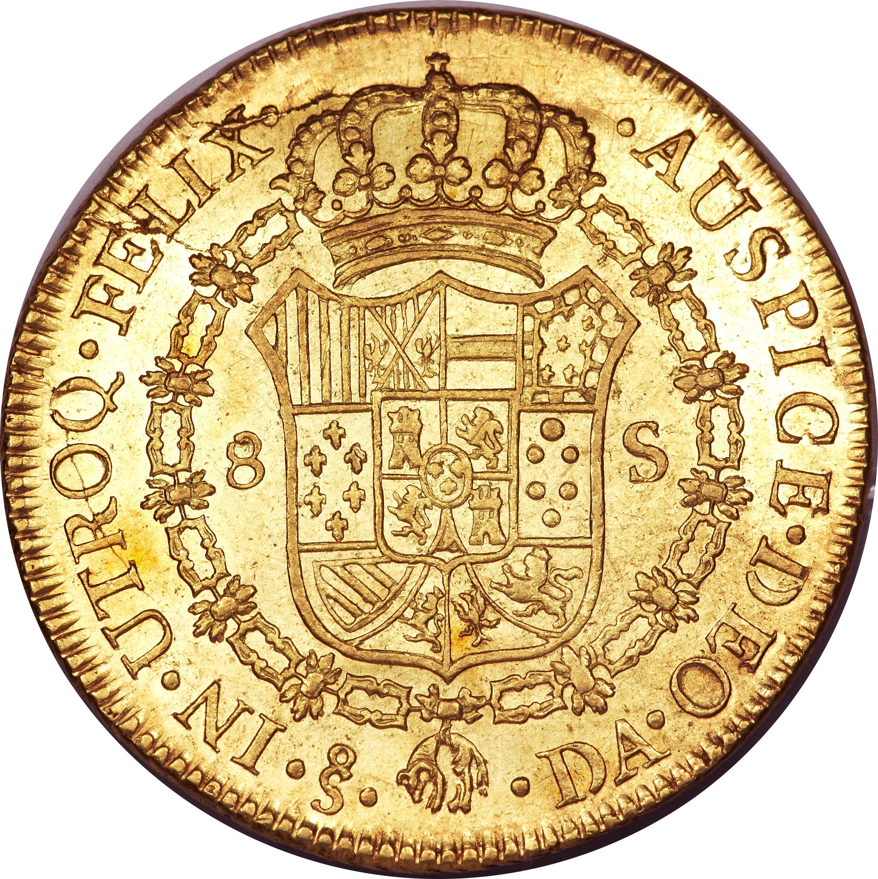8 ескудо — Карл IV (бюст Карла III, CAROL IV) 1789 – 1791 Чилі