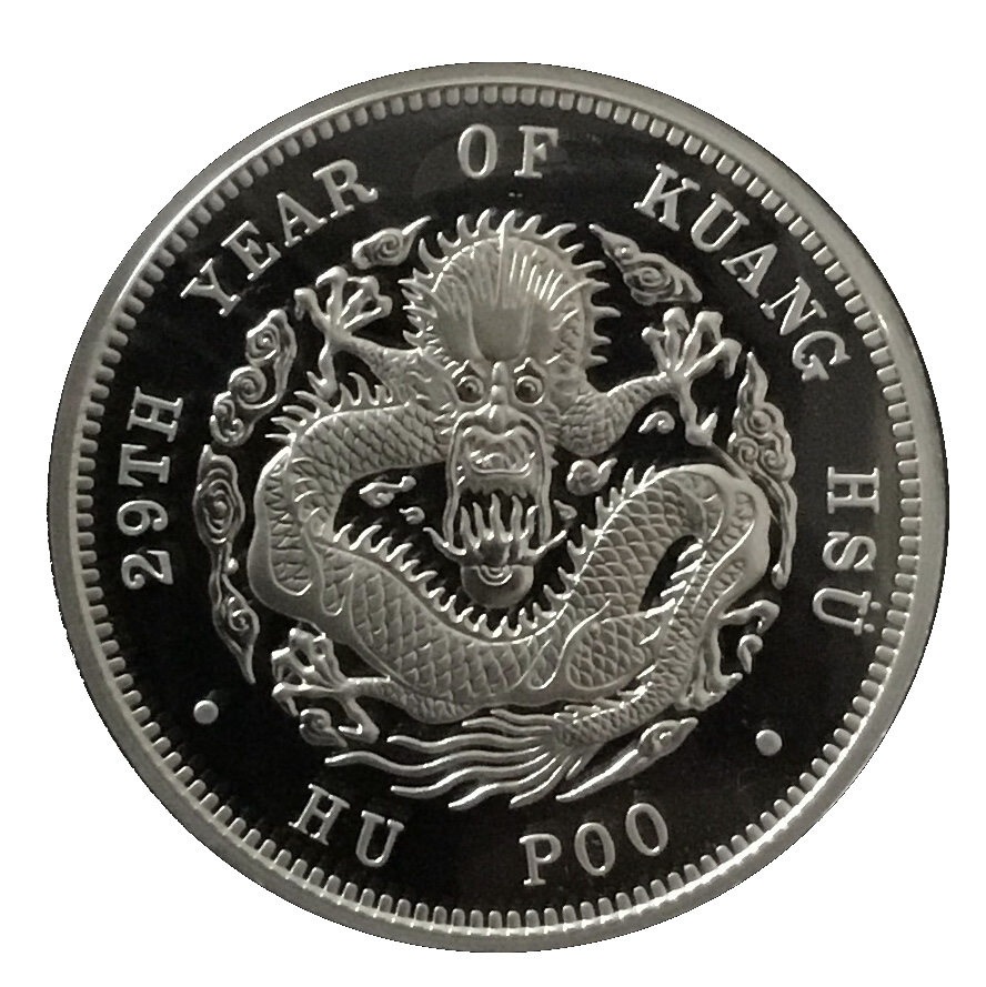 Назва: 1 унція срібла — Гуансю Юаньбао Чілі Дракон Долар Рестрайк