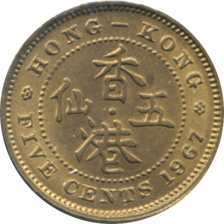5 центів — Єлизавета II (1-й портрет; захисний кант) 1958 – 1967 Гонконг