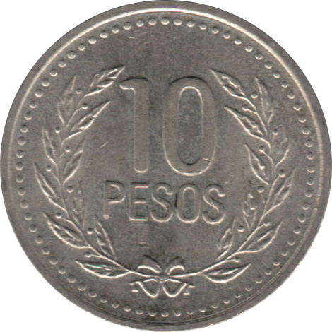 10 песо 1989 – 1994 Колумбія