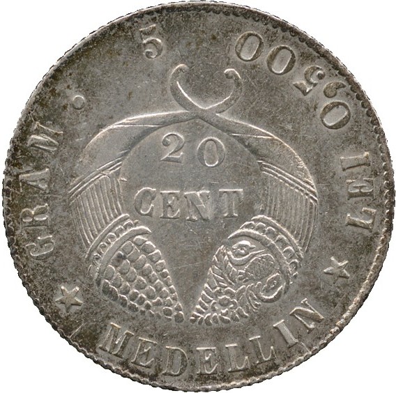 20 сентаво (Колумбійські Сполучені Штати) 1886 – 1886 Колумбія