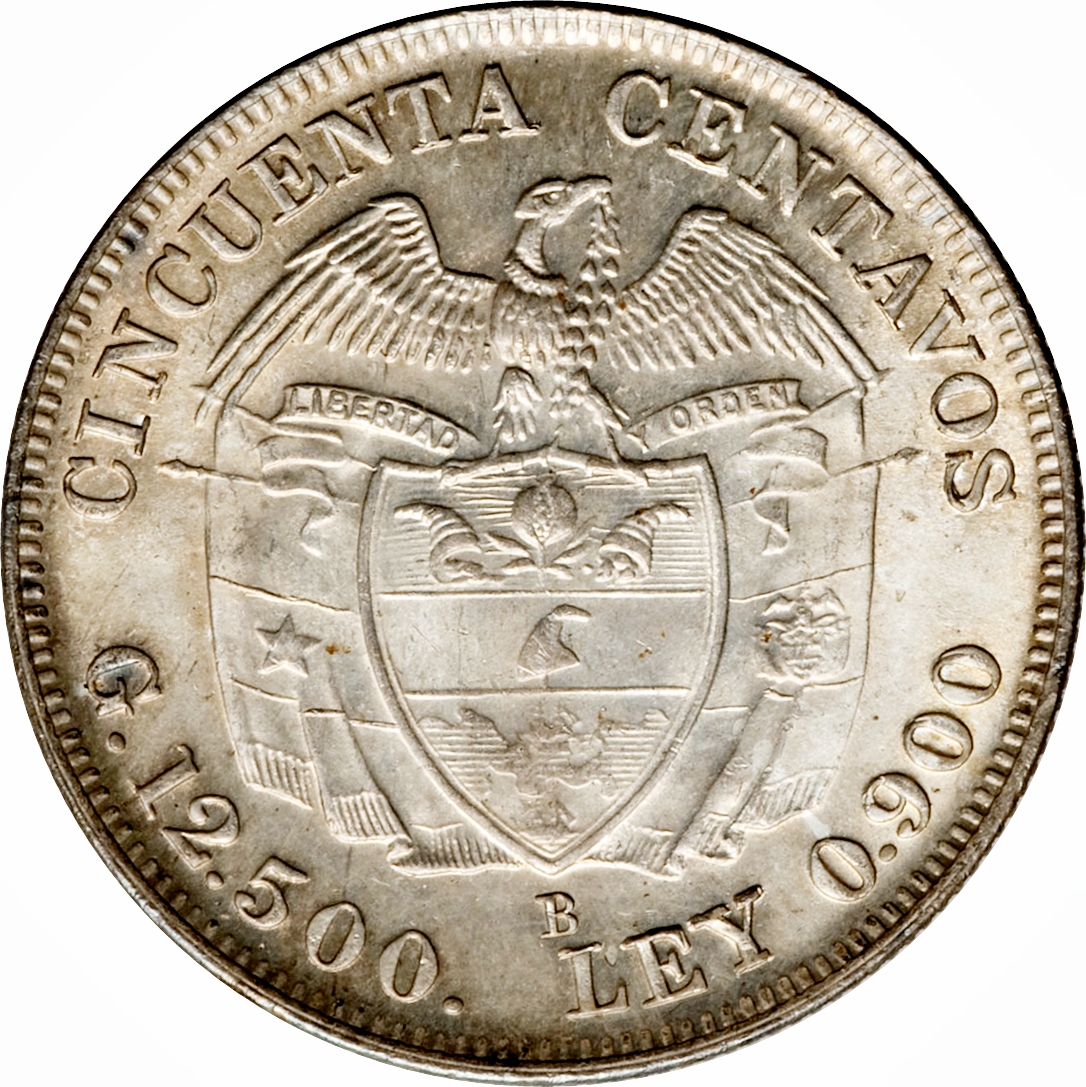 50 сентаво 1912 – 1933 Колумбія