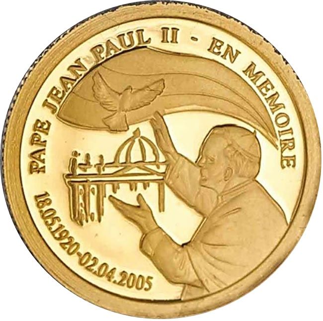 20 франків (На згадку про Папу Івана Павла II) 2005 – 2005 Демократична Республіка Конго