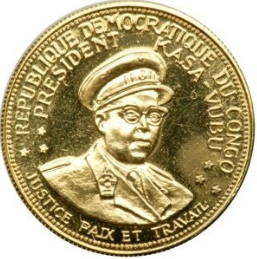 Опис: Назва держави вигнута по верхньому краю. Ім'я правителя вигнуте під назвою держави. Погруддя першого президента Джозефа Каса-Вубу. Легенда держави вигнута по нижньому краю. Облямівка по зовнішньому краю.