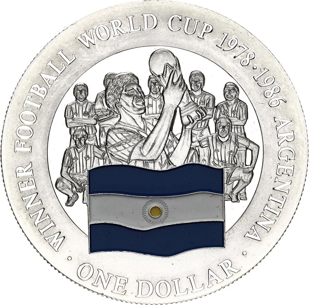 1 долар — Єлизавета II (1978·1986 Переможець чемпіонату світу з футболу) 2001 – 2001 Острови Кука