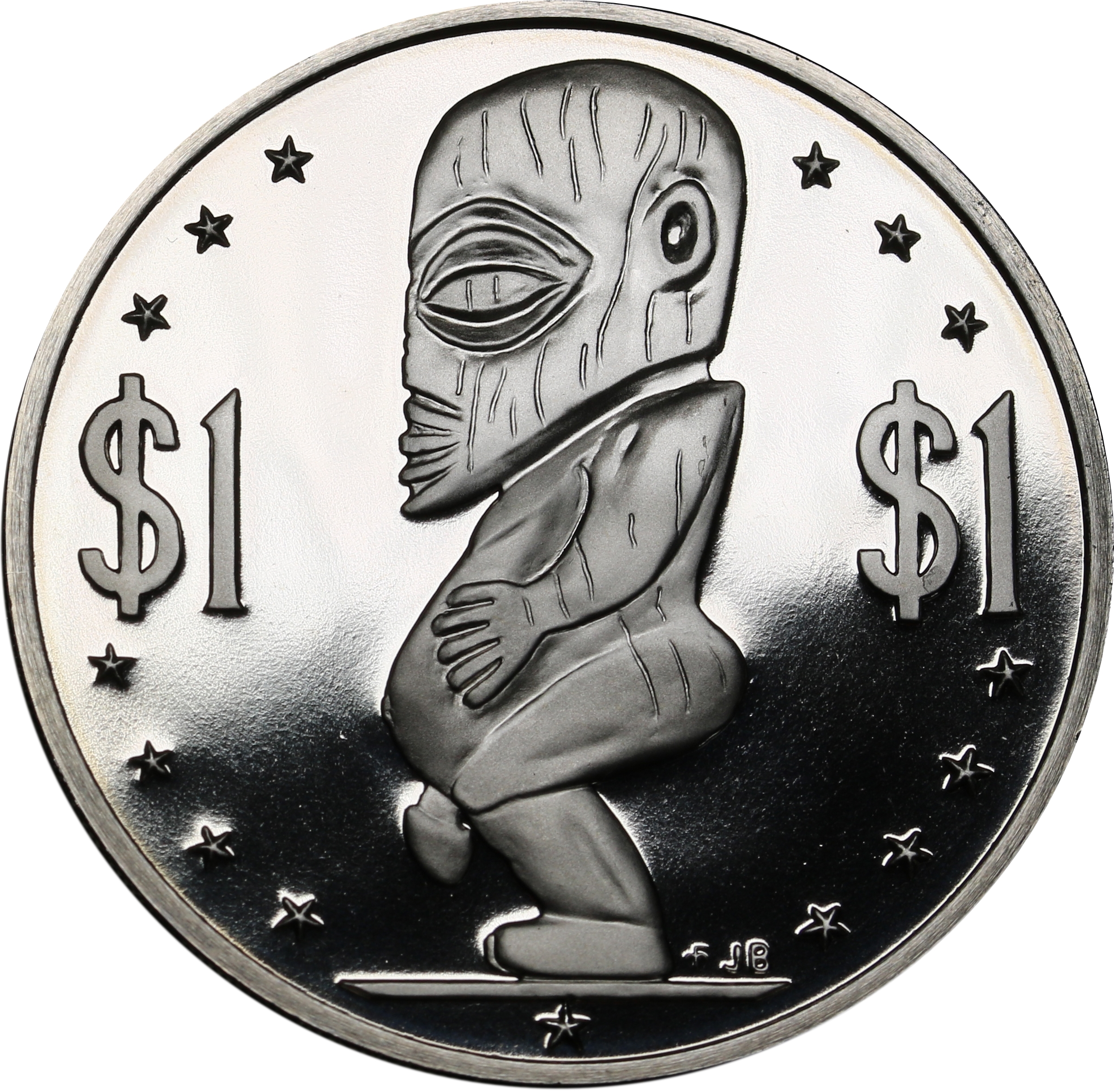 Опис: Тангароа, древній бог створення, води, океану, мореплавства та небес, оточений п'ятнадцятьма зірками, що символізують п'ятнадцять островів Кука. Цей рідкісний різьблений Тікі розділяє номінали.