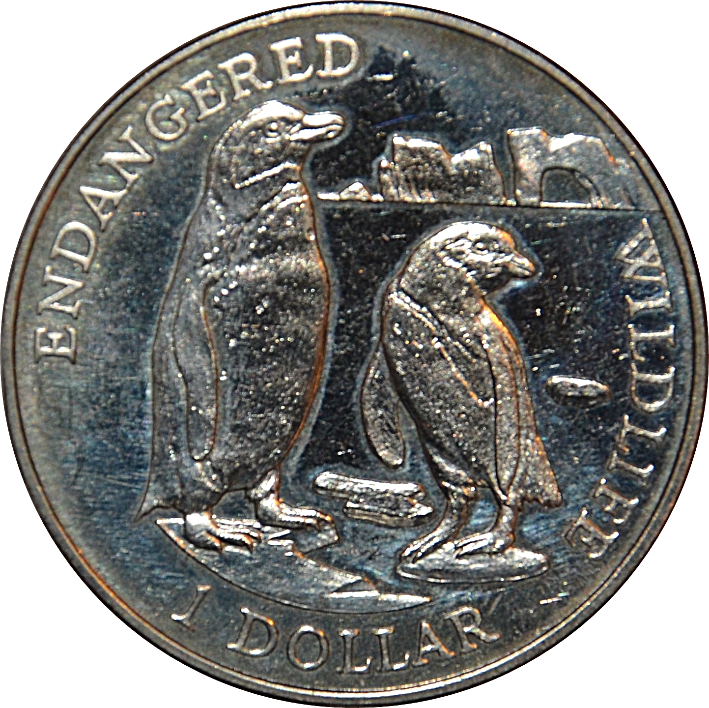 1 долар — Єлизавета II (пінгвіни-осли) 1996 – 1996 Острови Кука