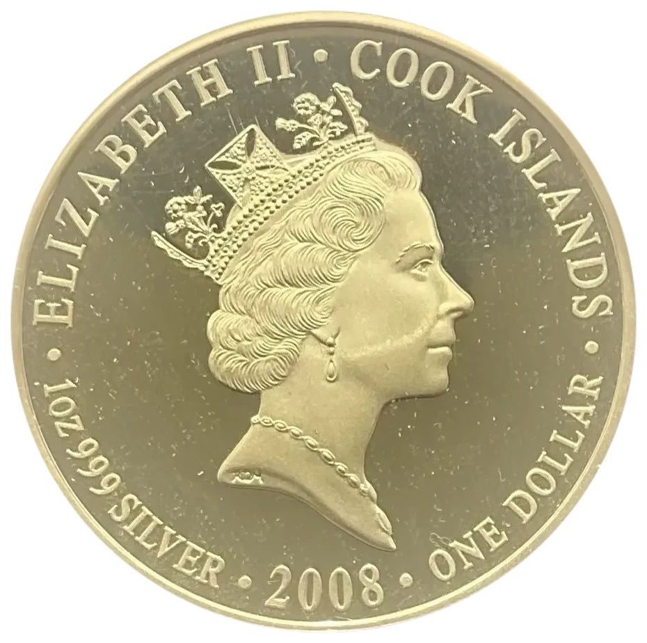 1 долар — Єлизавета II (король Георг III, спадова гвінея) 2008 – 2008 Острови Кука