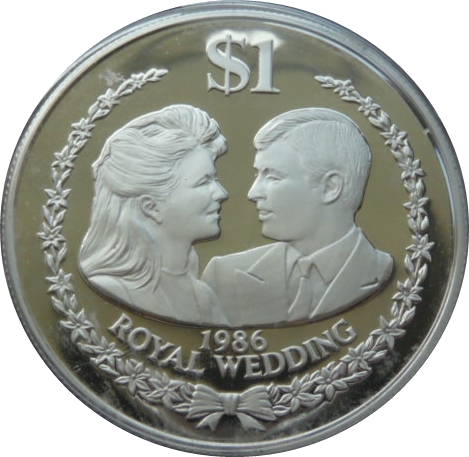 1 долар — Єлизавета II (королівське весілля) 1986 – 1986 Острови Кука