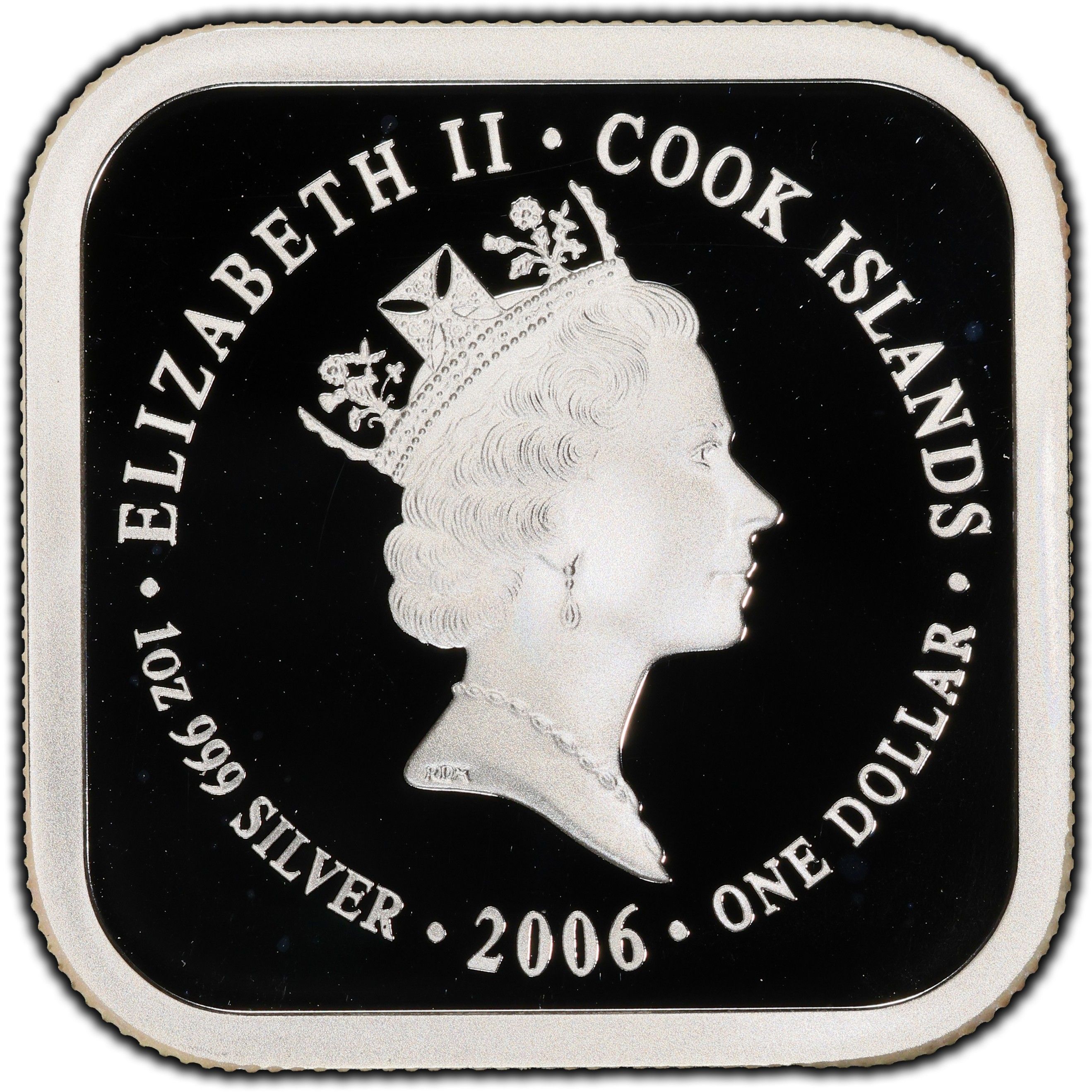 1 долар — Єлизавета II (квадратний пенні) 2006 – 2006 Острови Кука