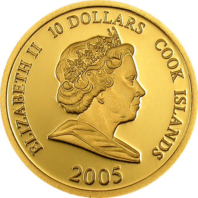 10 доларів — Єлизавета II (Папа Іван Павло II) 2005 – 2005 Острови Кука