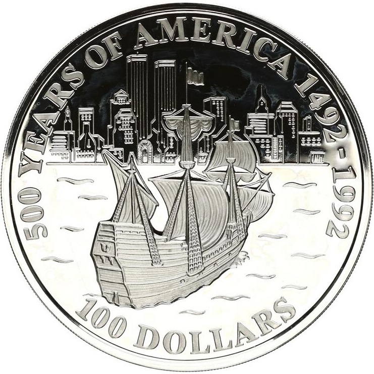 100 доларів — Єлизавета II (парусник у Нью-Йорку) 1993 – 1993 Острови Кука