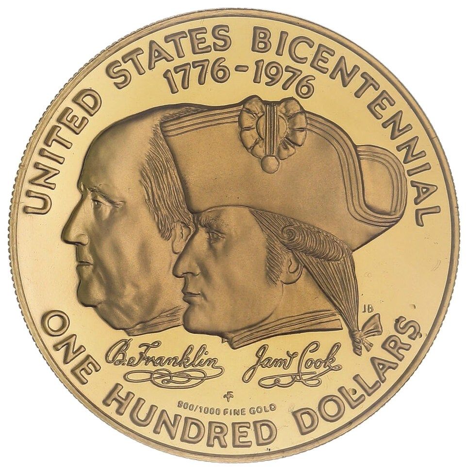 100 доларів — Єлизавета II (Двохсотріччя Сполучених Штатів) 1976 – 1976 Острови Кука