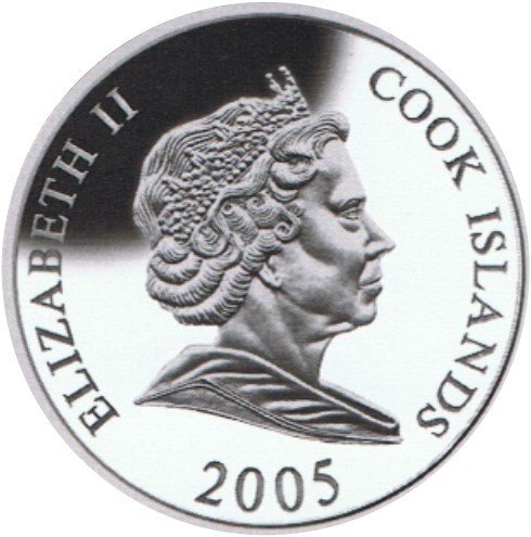 5 доларів — Єлизавета II (18-й чемпіонат світу з футболу 2006 року, Німеччина: стадіон у Мюнхені) 2005 – 2005 Острови Кука