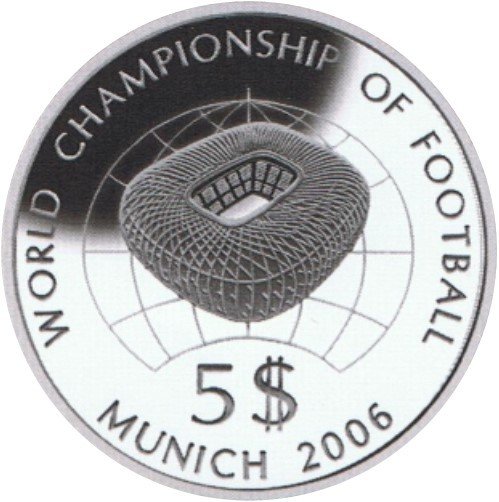 Назва: 5 доларів — Єлизавета II (18-й чемпіонат світу з футболу 2006 року, Німеччина: стадіон у Мюнхені)