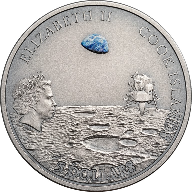 5 доларів — Єлизавета II (висадка на Місяць) 2019 – 2019 Острови Кука