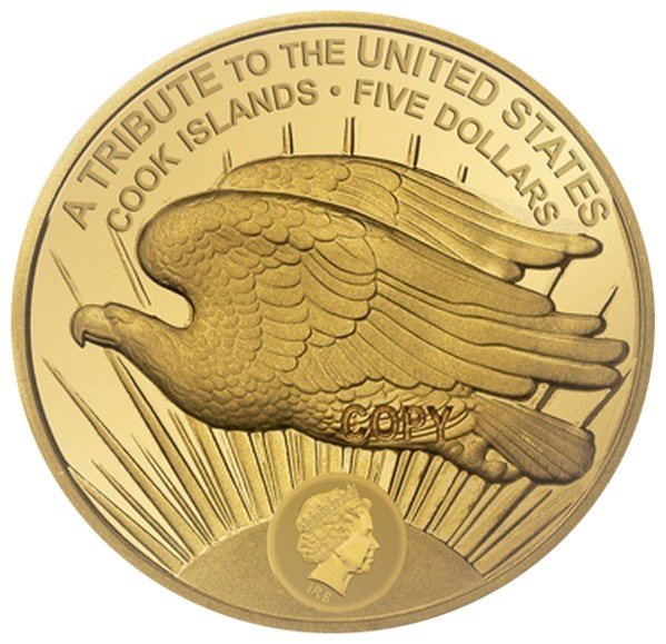 5 доларів — Єлизавета II (Сент-Годенс Дабл Ігл) 2021 – 2023 Острови Кука