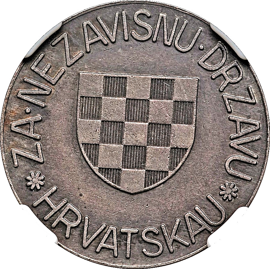 Опис: У центральній частині монети зображено старий хорватський герб. По краю монети написано ZA NEZAVISNU DRZAVU HRVATSKAU. Слово HRVATSKAU розділене квітами.