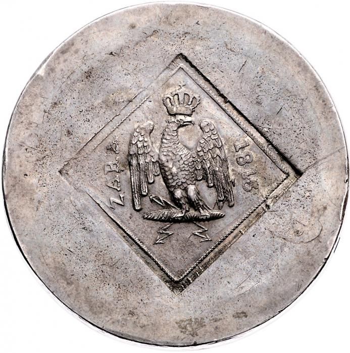 18 франків, 40 сантимів, 4 унції (французька монета облоги — великі марки) 1813 – 1813 Зара, місто