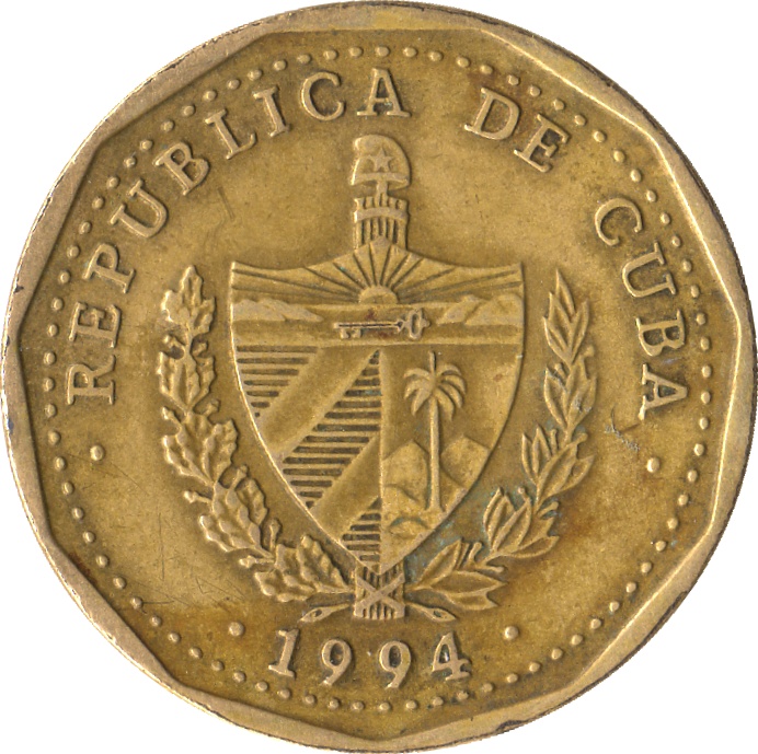 Опис: Кубинський герб, назва країни у вигляді вигнутої легенди вгорі, дата на екзергу. Одинадцятикутний обідок (11 сторін) з лінією намистин поблизу обідка. Дата на екзергу.