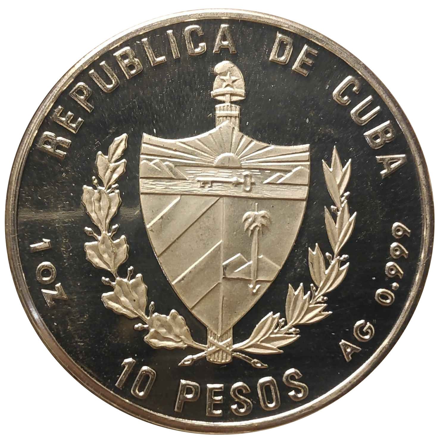 Опис: Кубинський герб, назва країни зверху, номінал знизу, вага та проба з боків.