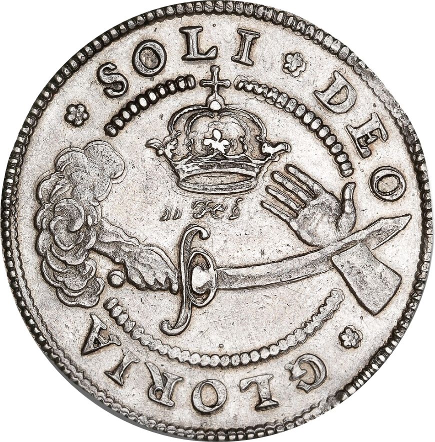 Опис: Монограма коронованого короля в облямованому крузі. Під монограмою — хмара між словами EBEN-EZER. Хмара повністю знаходиться всередині облямованого круга. Номінал і дата — зовні.